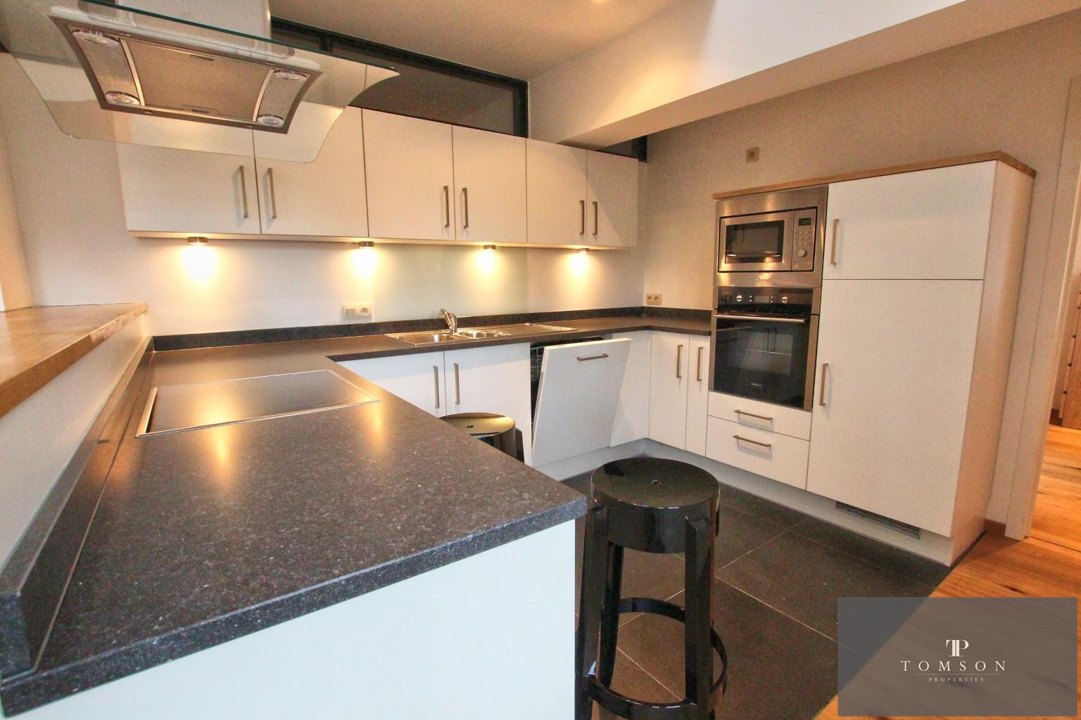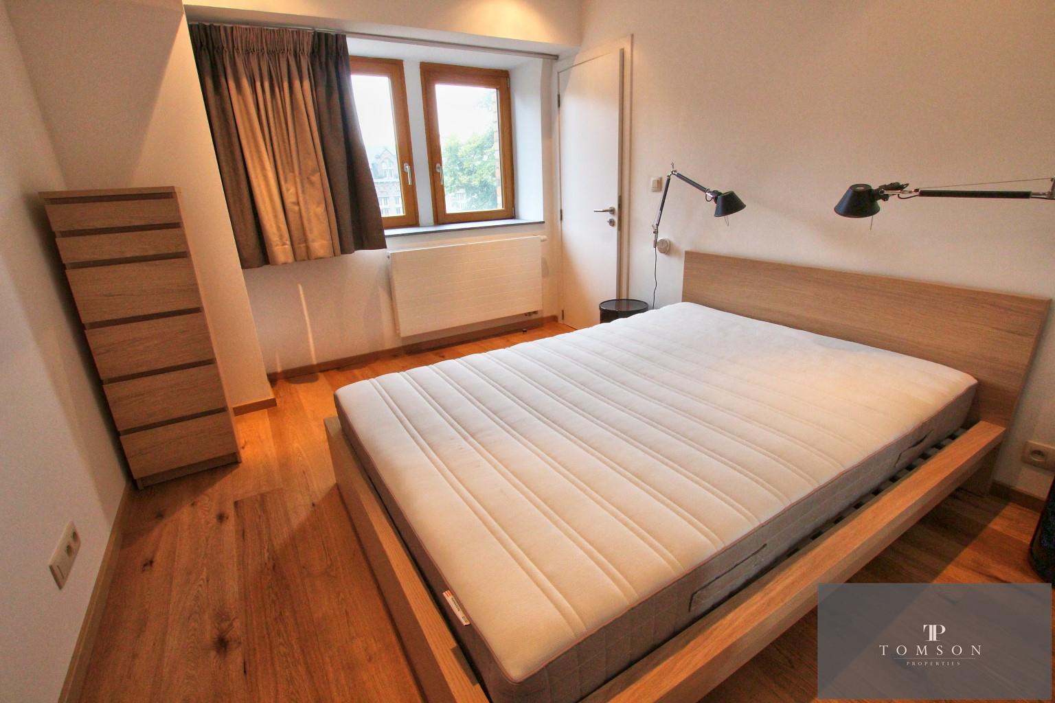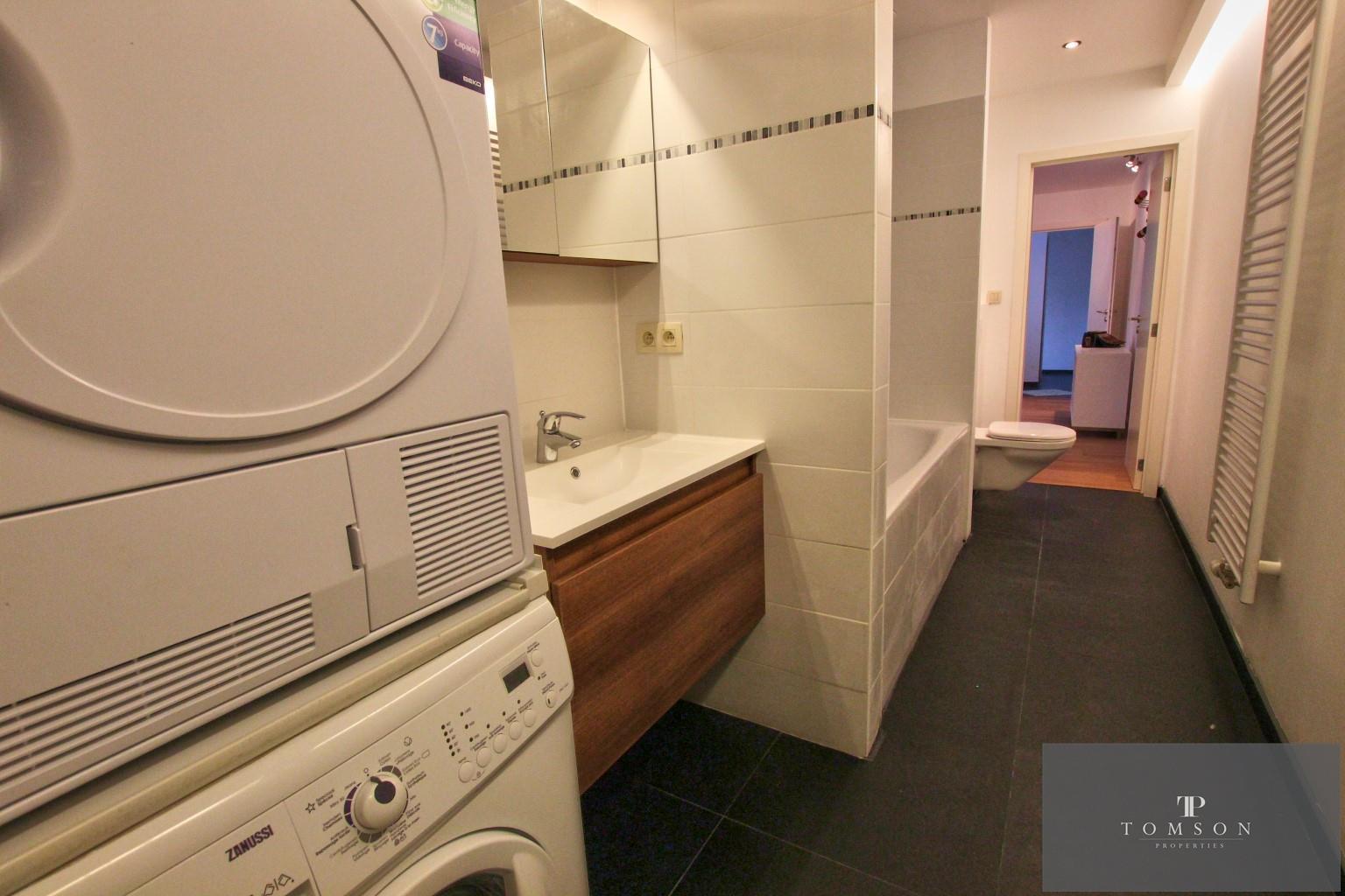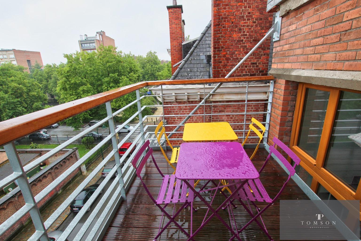 MONTGOMERY : Superb duplex ±100m ² fully FURNISHED completely renovated including: Living / dining room with fully equipped kitchen, parquet floor, floor heating, bathroom, 2 bedrooms, office. Double flux ventilation, dressing, washing machine, dryer. Terrace ideally exposed. First occupancy after renovation. Charges of EUR 100 includes a provision for water and common expenses. Information and visits 0473 / 33.41.68. Other properties at www.tomson properties.be